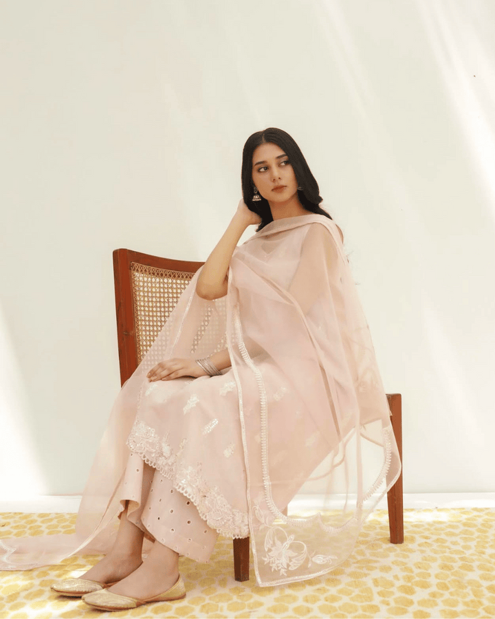 Introducing Dusty Pink, a timeless 3-piece stitched suit that embodies elegance, charm, and femininity. Crafted from premium lawn fabric, this ensemble offers the perfect combination of comfort and luxury, making it ideal for formal gatherings, festive occasions, and elegant evening soirées.