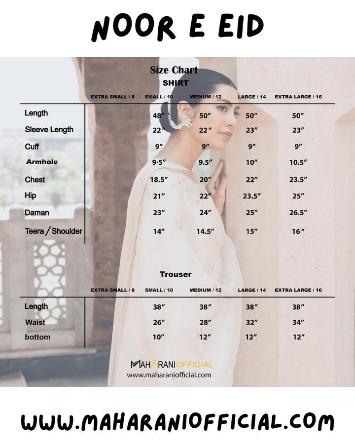 Elevate your wardrobe with this beautifully Noor-e-Eid , a perfect fusion of classic charm and modern finesse. Designed for women who appreciate graceful styling with subtle statement elements, this ensemble is ideal for festive gatherings, semi-formal occasions, or elegant daytime wear.
