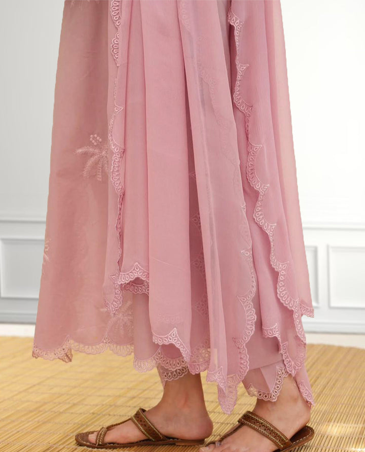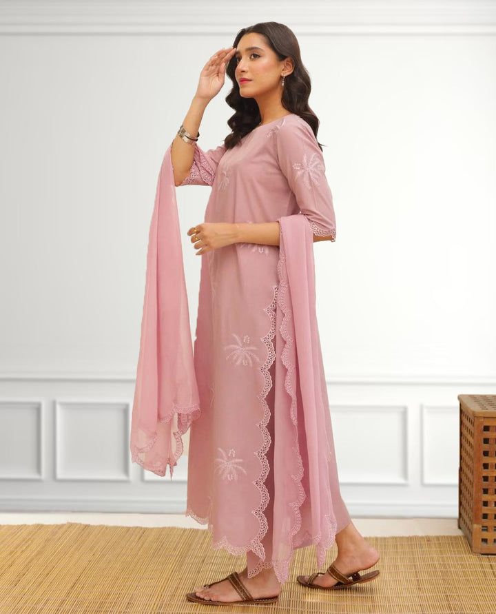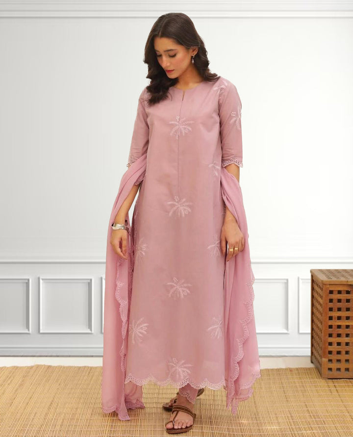 The real charm of Rosy Bloom lies in its fine finishing. Scalloped edges on the sleeves, hemline, and dupatta give the outfit a refined and graceful look, elevating it from a simple daywear set to an effortlessly chic ensemble. These soft details are perfect for those who appreciate subtle elegance over bold statements.